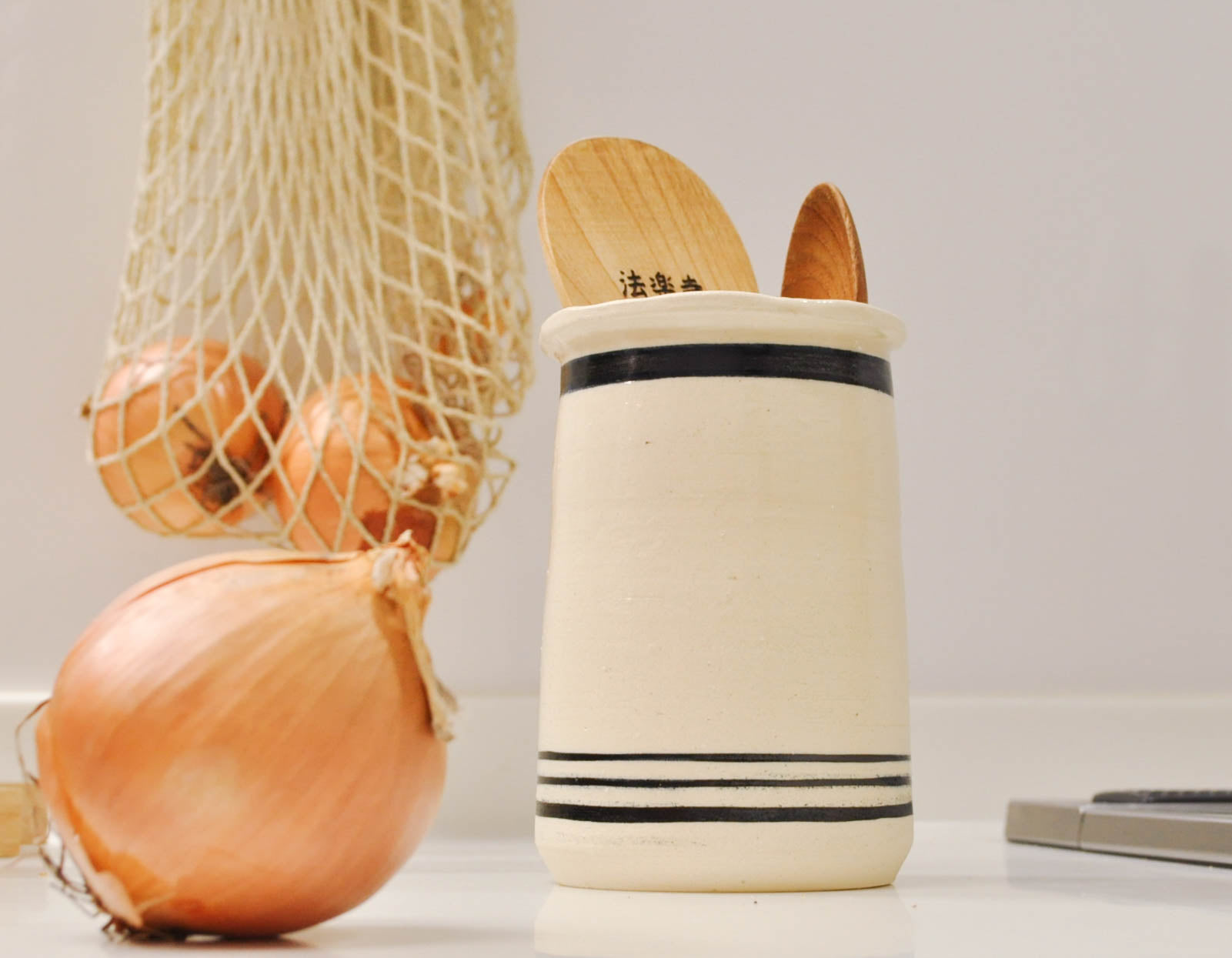 Our recommendation: you can use this piece to place your cooking utensils. If your kitchen is small, you will give it lighter and more spaciousness with this piece. You can also use this container as a flower pot or as a decoratiion.