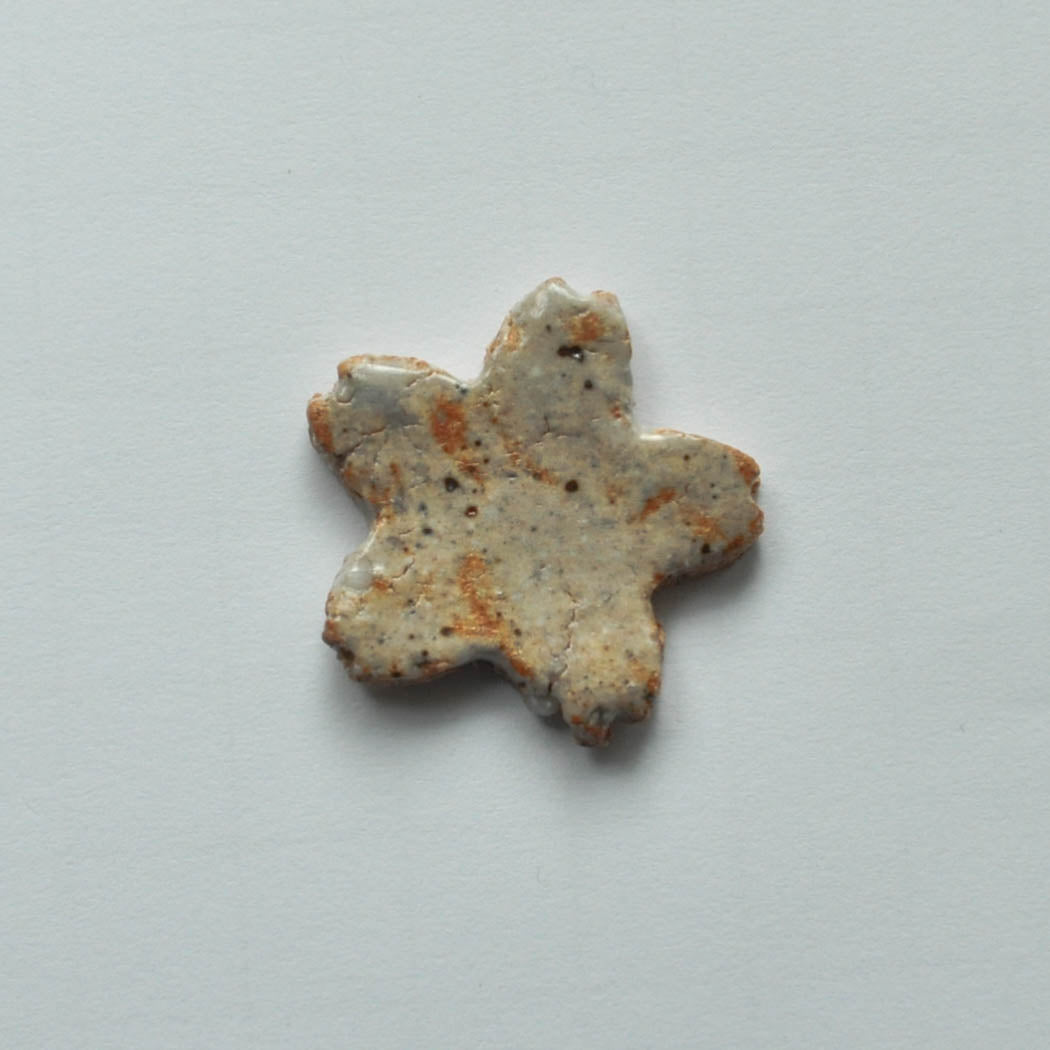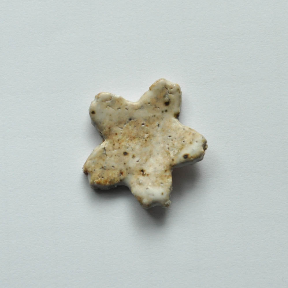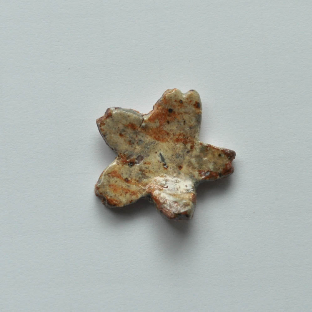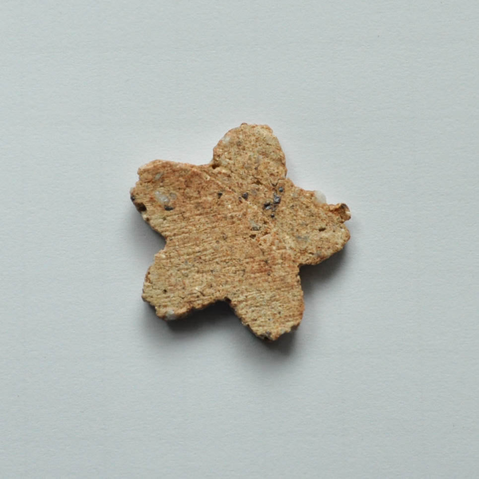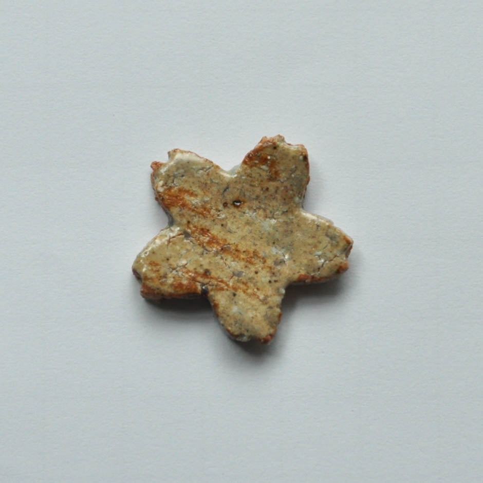 このサクラ箸置きは信楽粘土と奈良県の原土を混ぜて作った