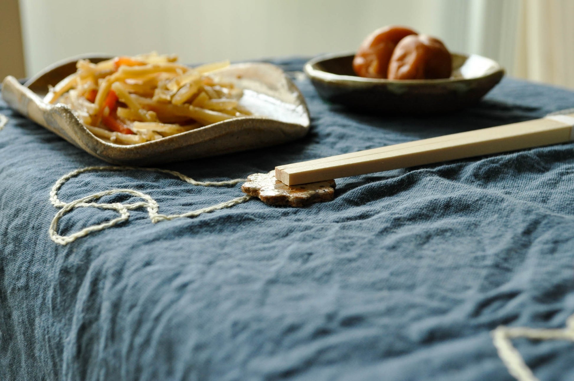 ずっとお箸を持ったままでいる必要がなく、小休止で箸置きにお箸を置く。