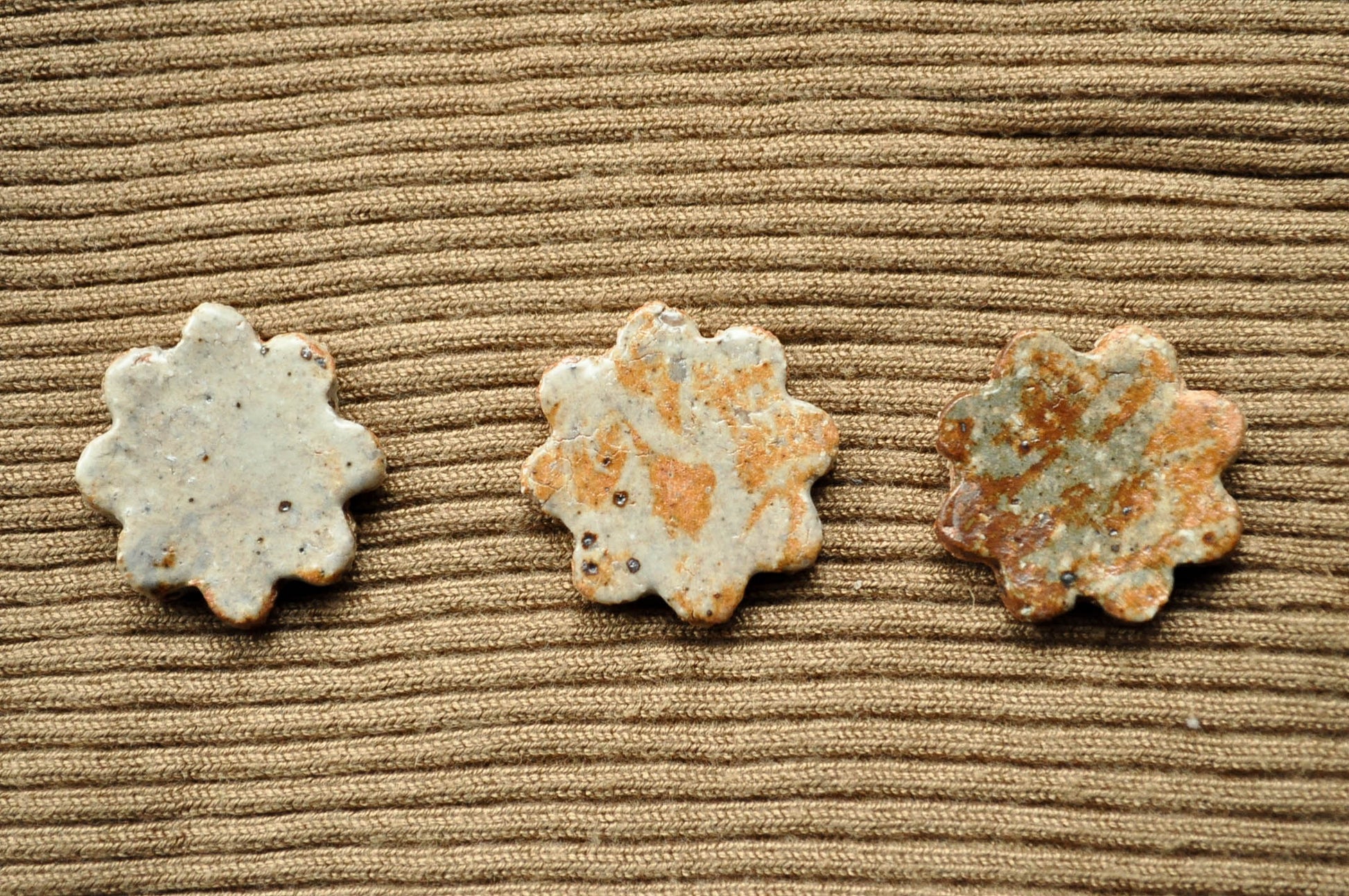 この箸置きは信楽粘土と奈良県の原土を混ぜて作ったので