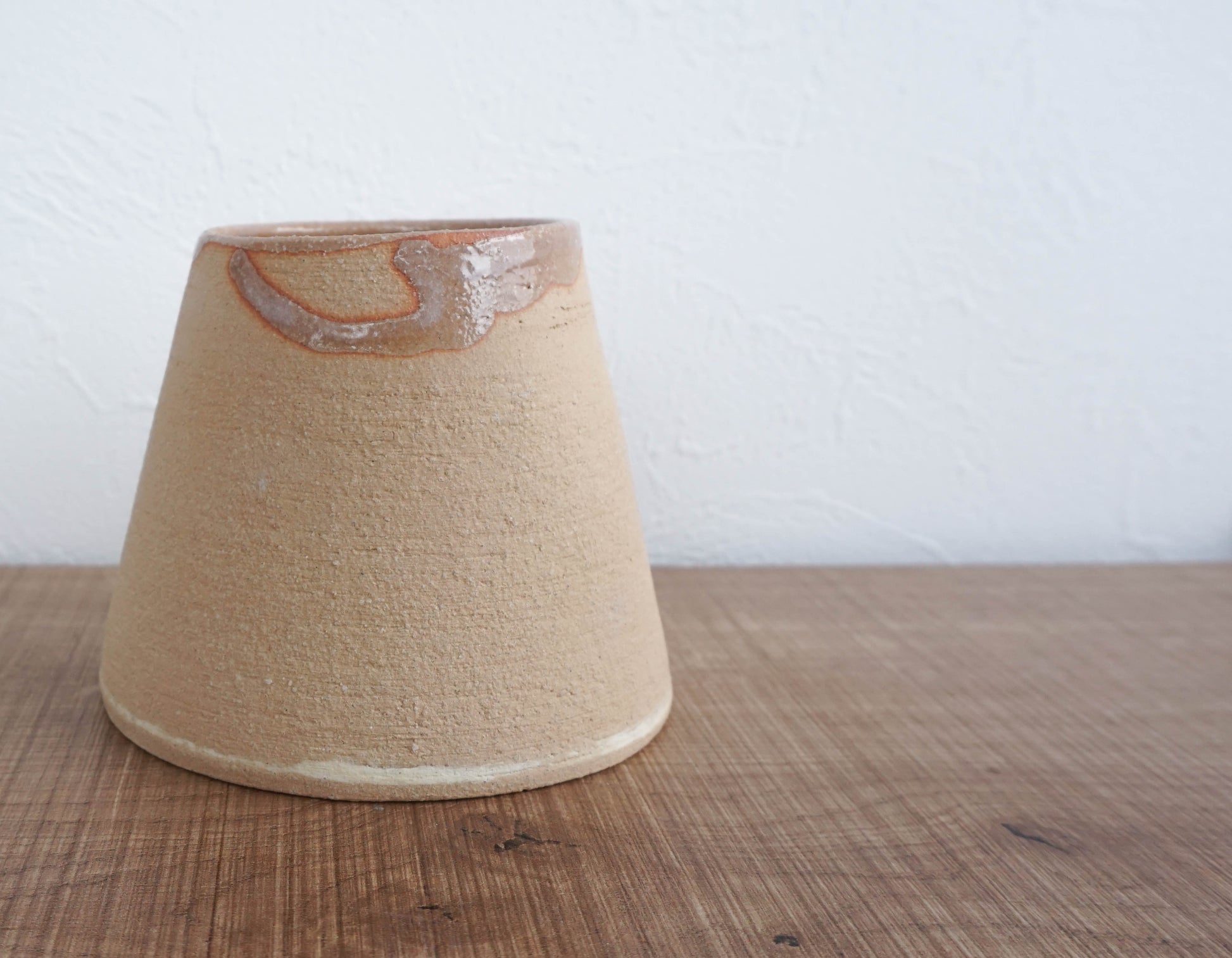 外側には上のところにだけ釉薬をかけてあり、1つ1つ手作業で釉薬掛けをしたので