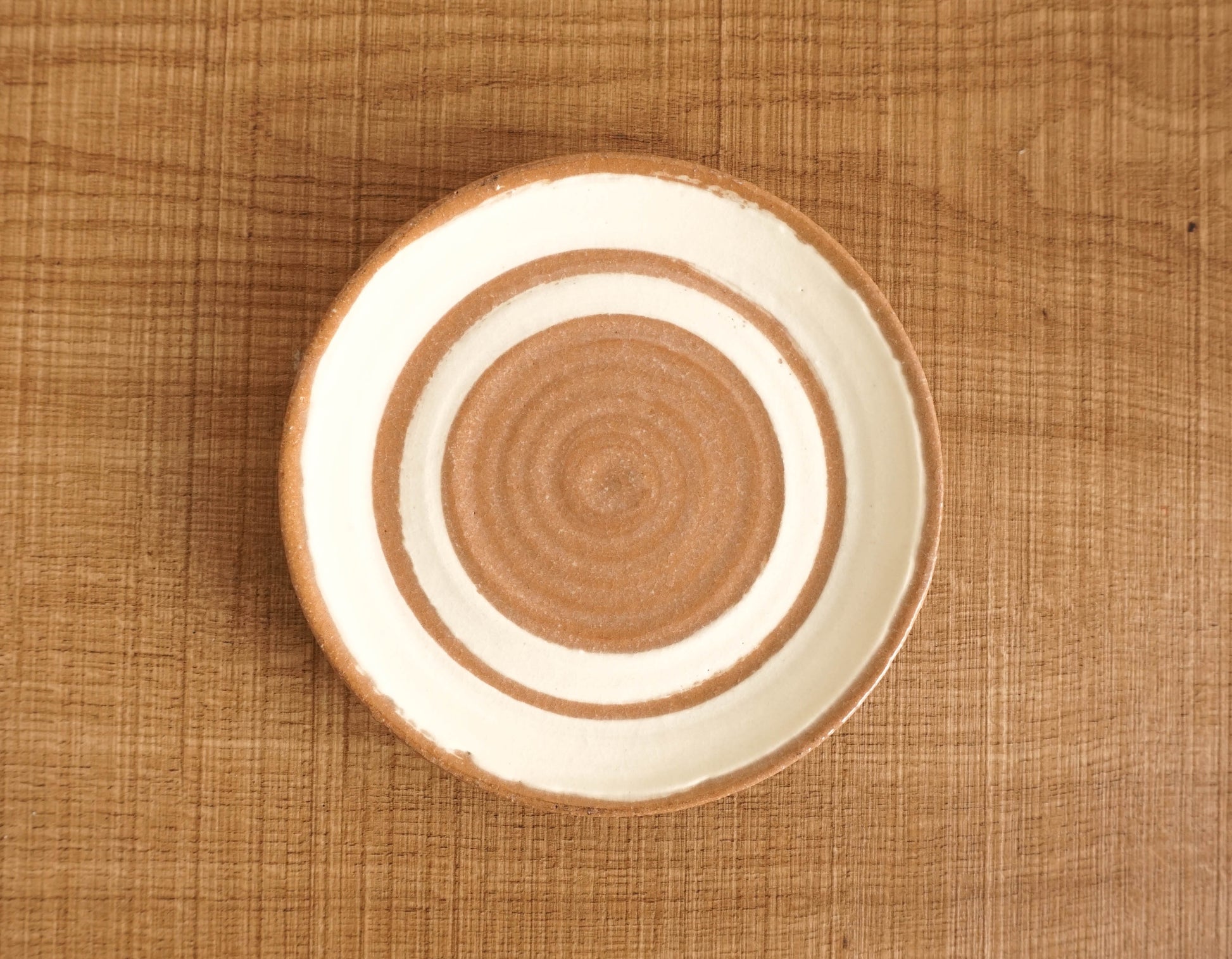 茶色と白が美しいコントラストのお皿です。